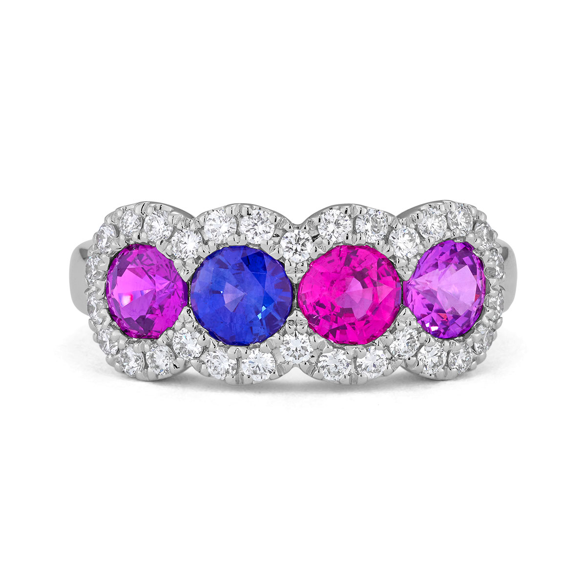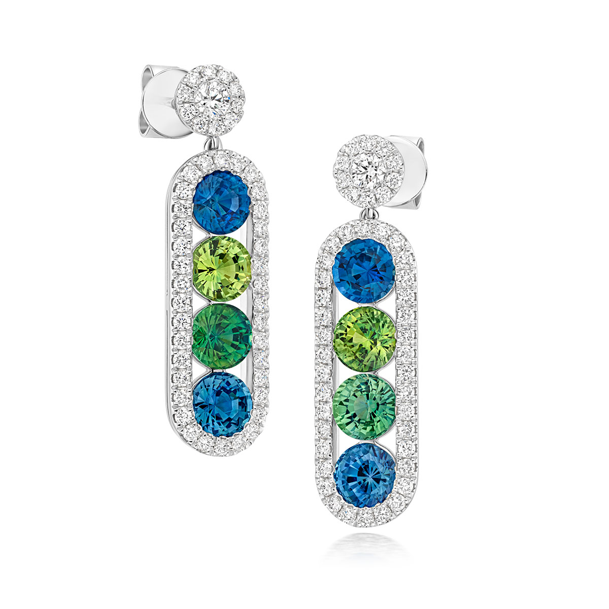 CANDY CANE! Super-fine earrings set with glittering fine diamonds and 4.64ct of fine brilliant-cut, candy-coloured natural Madagascan Fancy Sapphires in 18k White Gold.