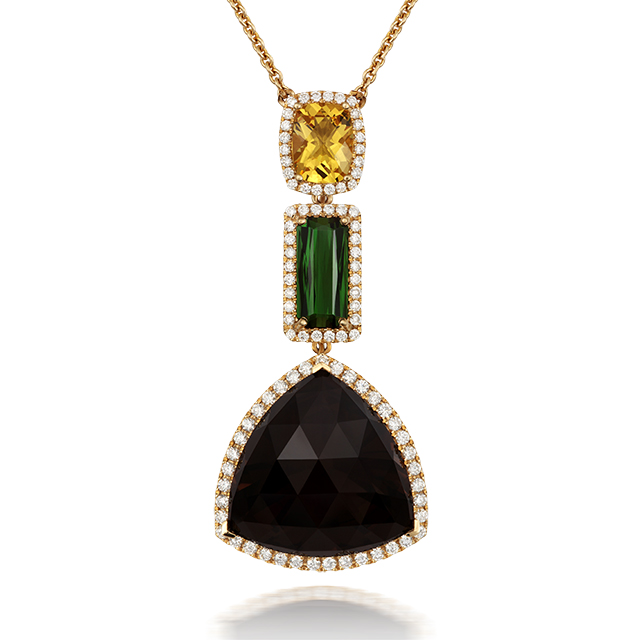 THE NATURAL TONES OF AFRICA COME TO LIFE! This stunning gala pendant has been crafted in 18k Rose Gold and set with glittering fine diamonds and specially-faceted cognac-coloured Quartz gems.