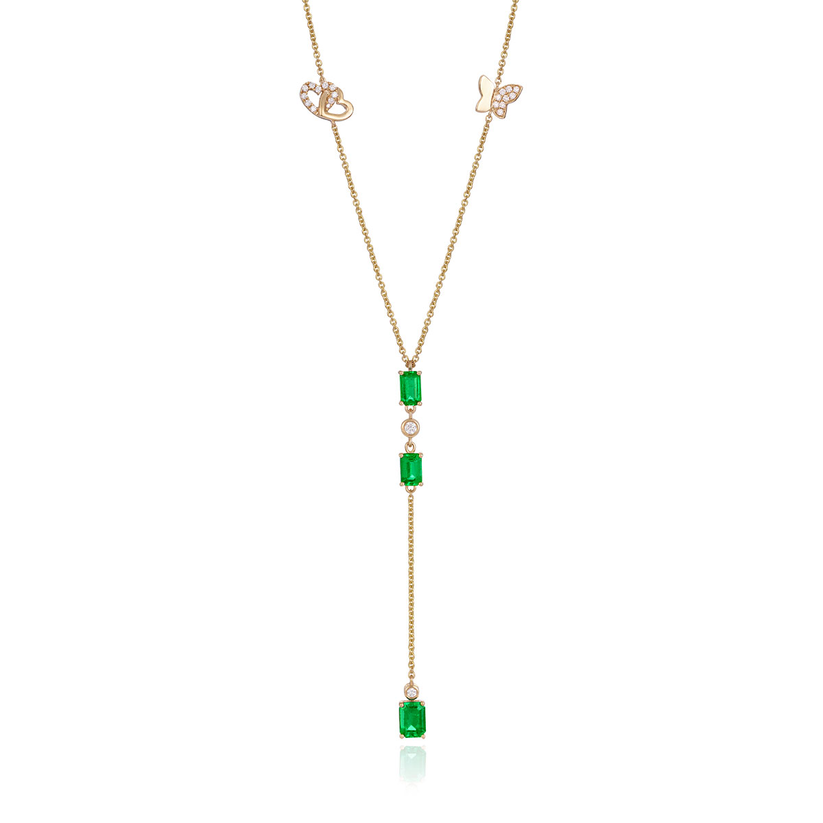 This exquisite 18k Yellow Gold dangling neckpiece dazzles with fine glittering diamonds & a 5.87ct array of vibrant trilliant-cut Rubelite Tourmaline gemstones. A striking fusion of brilliance & bold colour, designed to captivate and inspire. Perfect for that elegant sweetheart or plunging neckline styled dress.