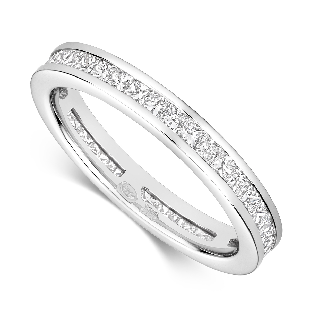 I will love you for eternity! A classic full-eternity 18k White Gold ring set with 1.55ct of glittering fine baguette-cut diamonds.