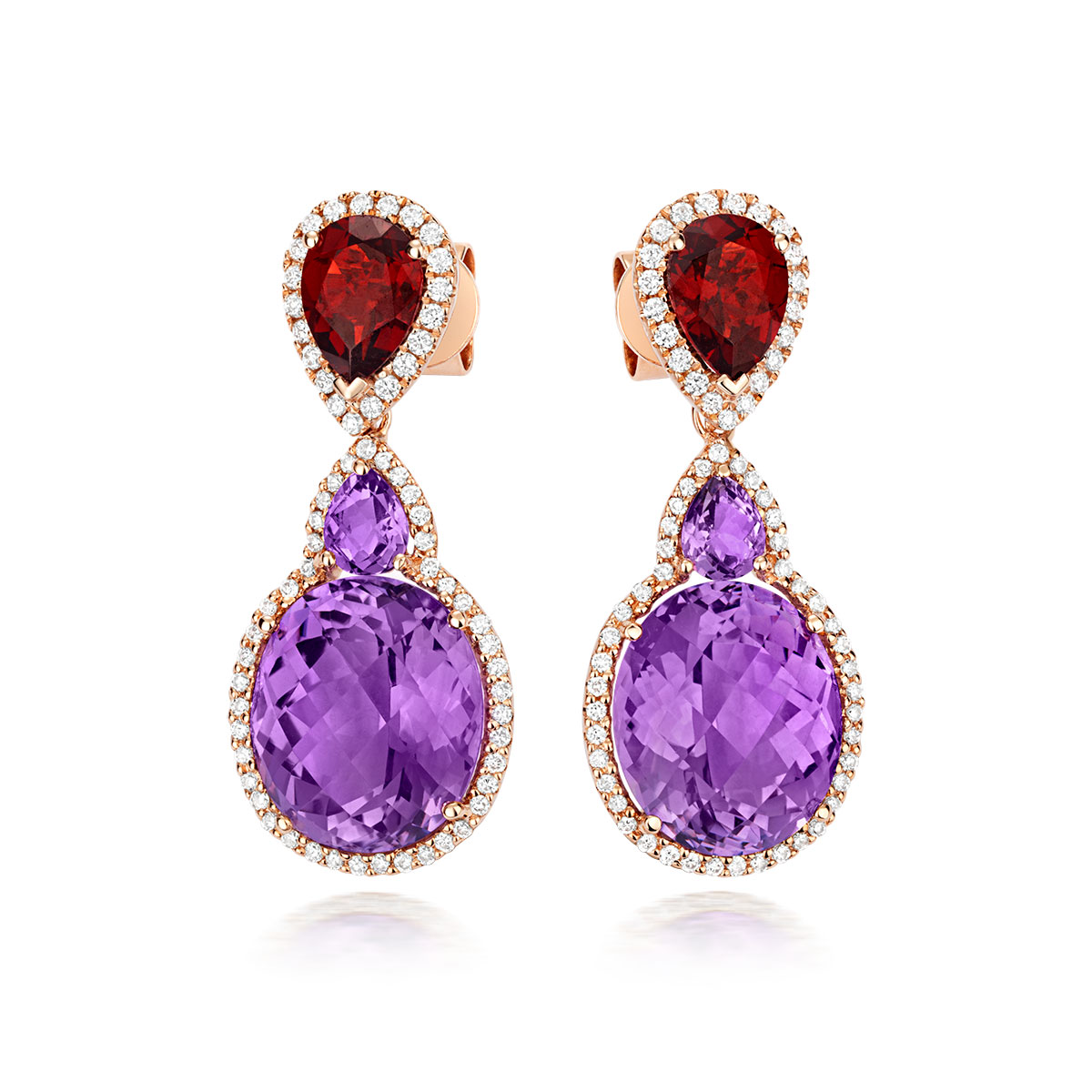 ORBITING AMETHYST! This magnificent cocktail ring has been crafted in 18k Rose Gold and set with an intertwining triple diamond halo of glittering fine diamonds orbiting around a beautifully faceted 14.00ct Amethyst. One-off & Exclusive!