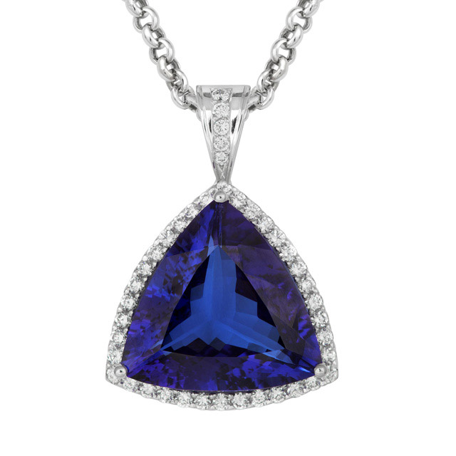 SCINTILLATING! This 18k White Gold ring is sensational as glittering fine diamonds dance around a sensational 9.19ct trilliant-cut AAAA Tanzanite at its centre.