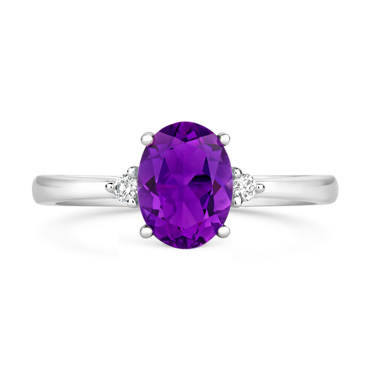 CLASSIC AMETHYST! A classic & timeless pendant set with a fine rich oval-cut Amethyst and round brilliant diamond in 18k White Gold.
