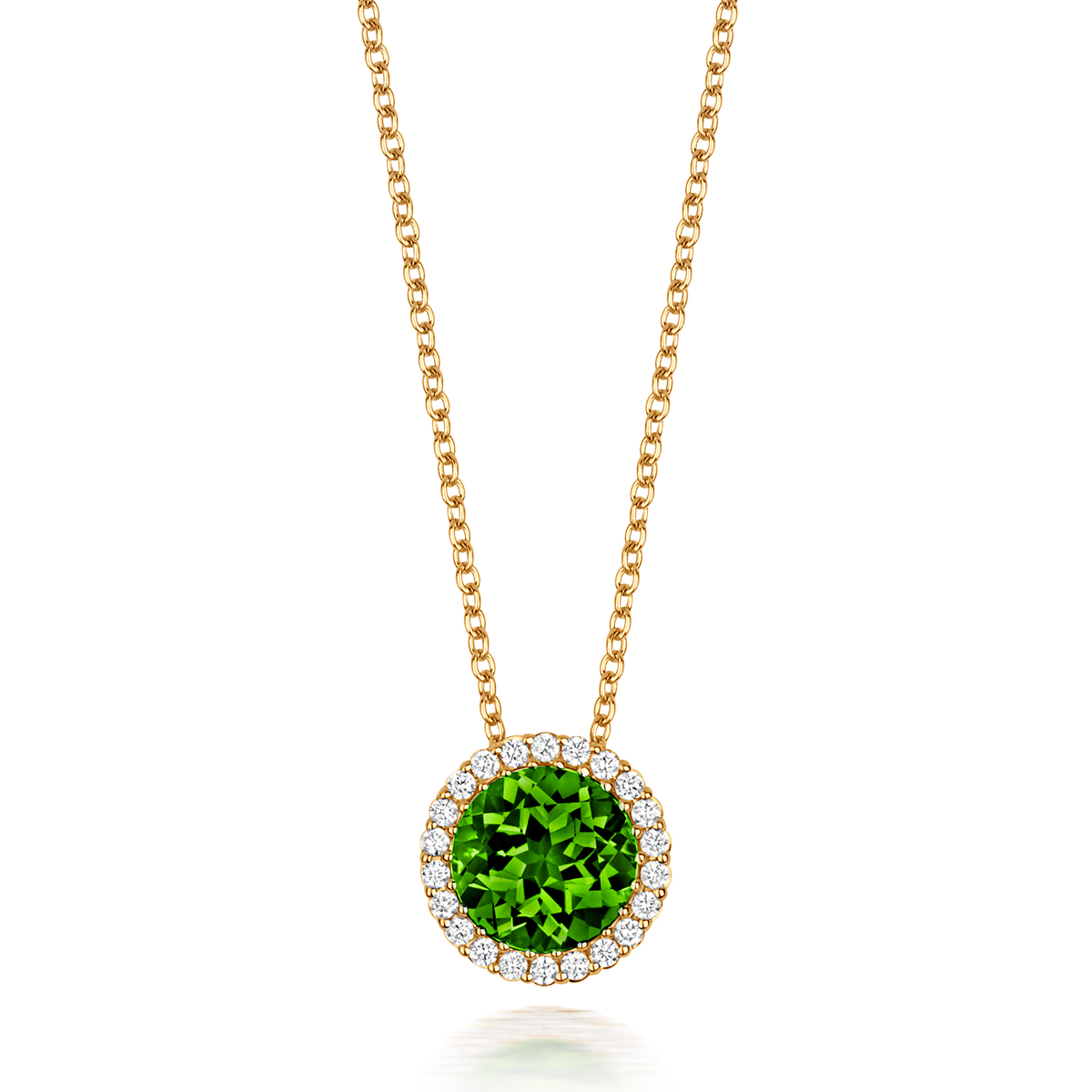 CLASSIC & FINE! A classic & contemporary pendant set with fine diamonds & a brilliant cut Garnet gemstone in 18k Yellow Gold.