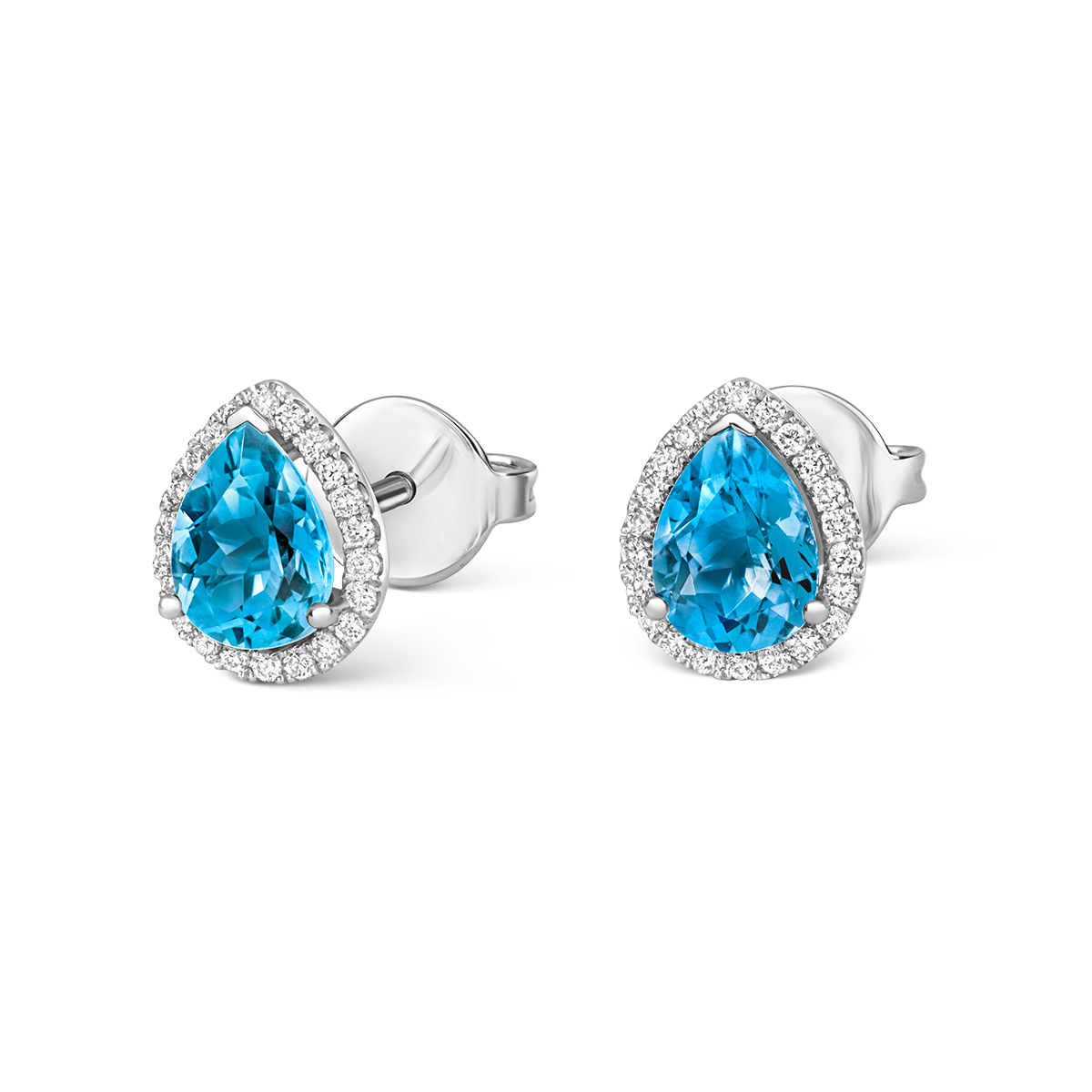 CLASSIC BLUE TOPAZ! A classic & timeless ring set with a fine rich pear-cut Blue Topaz (avg. 0.70ct) and fine round brilliant-cut diamonds in 18k White Gold.