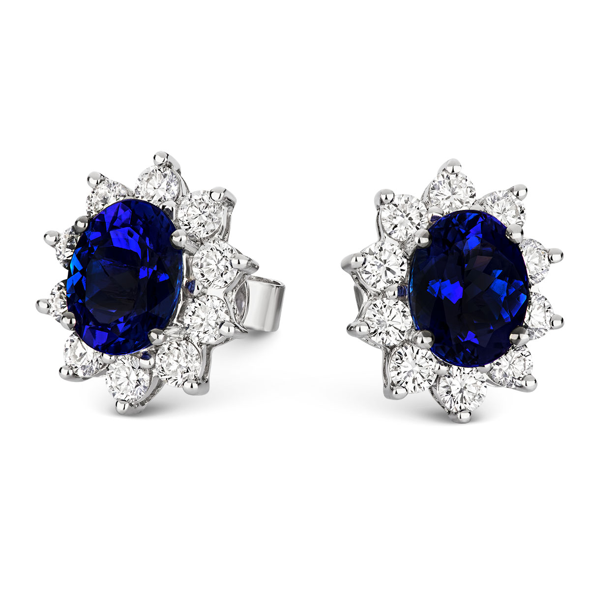 The perfect enagement ring. Crafted in Platinum and set with perfect round brilliant-cut fine diamonds & rich 1.61ct sea-blue Ceylon Sapphire.